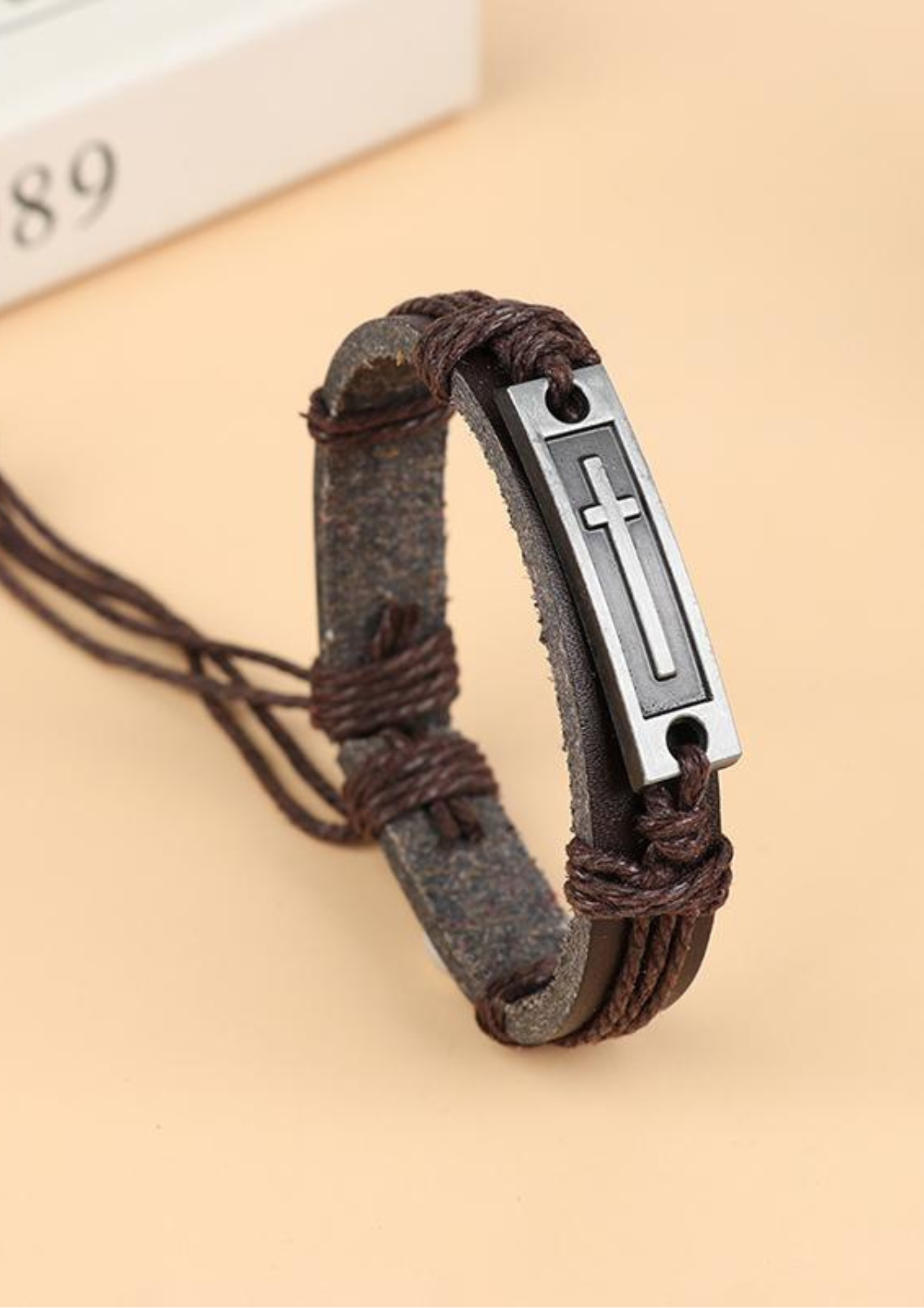 Brățara din piele cu simbolul crucii este un accesoriu elegant și plin de semnificație, potrivit atât pentru bărbați, cât și pentru femei. Designul rustic, cu șnururi împletite și element metalic decorativ, oferă un aspect modern-vintage, ideal pentru ținute casual sau smart-casual.