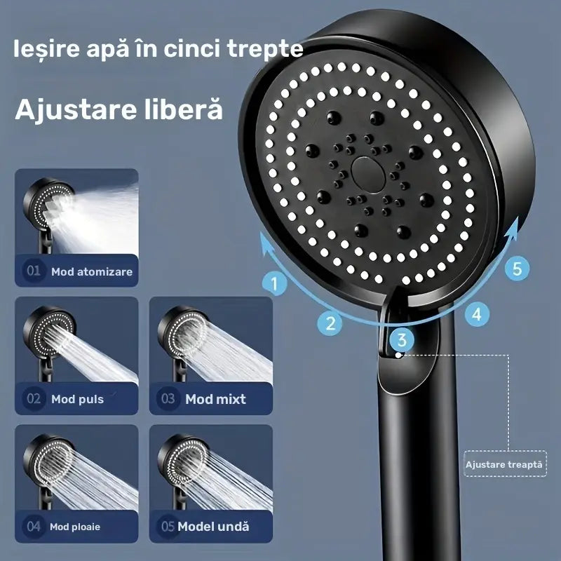 Zuhanyfej, 5 állítható üzemmód és magas nyomás