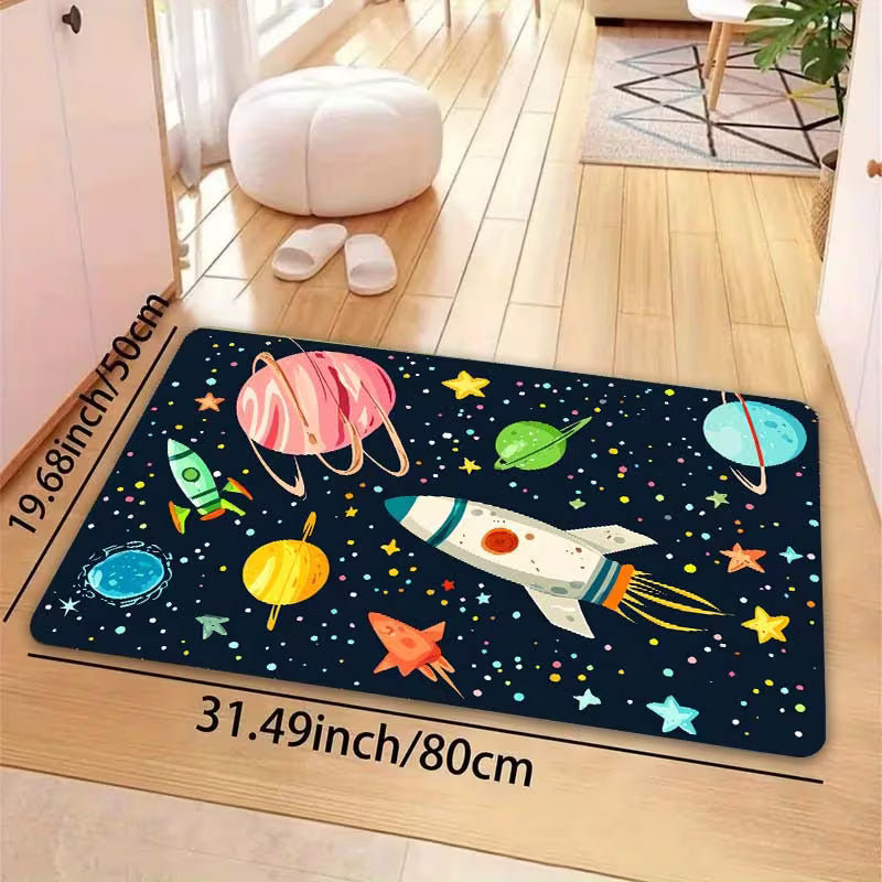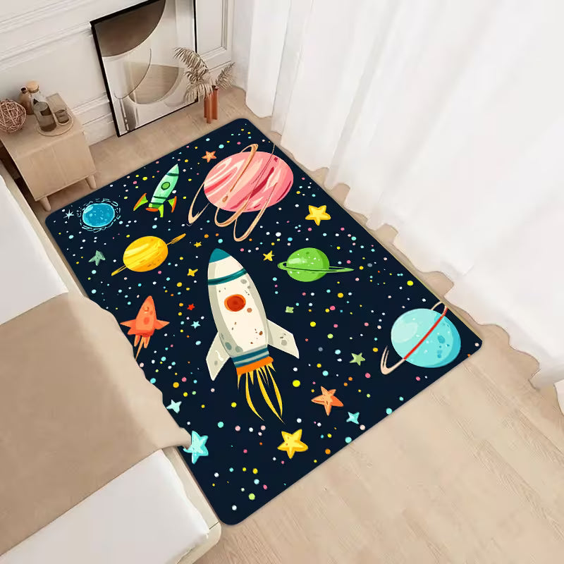 Transformă camera într-o adevărată galaxie a imaginației cu acest covor antiderapant cu diferite tematici. Decorat, covorul este perfect pentru joacă, relaxare și învățare, adăugând un plus de culoare și siguranță oricărui spațiu.