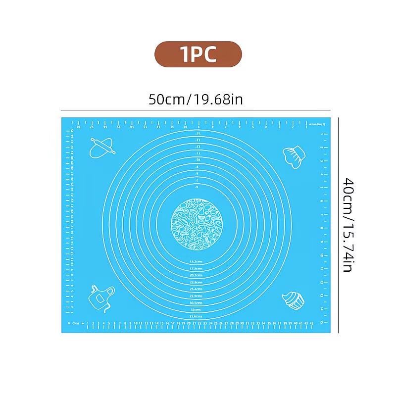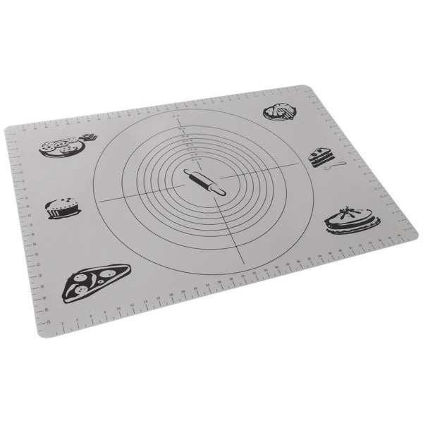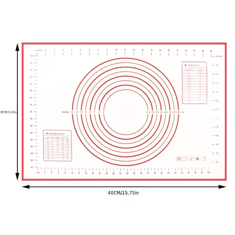 Acest covoraș din silicon este perfect pentru frământat aluat, întins foi de plăcintă sau copt. Realizat dintr-un material antiaderent, rezistent la temperaturi ridicate, îți permite să lucrezi cu ușurință fără a fi nevoie de făină în exces. Cu marcaje precise pentru dimensiuni și conversii de temperatură, este ideal pentru orice pasionat de patiserie.