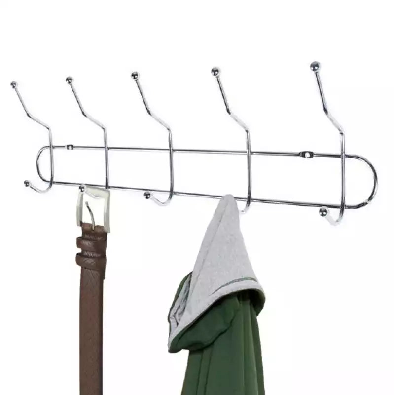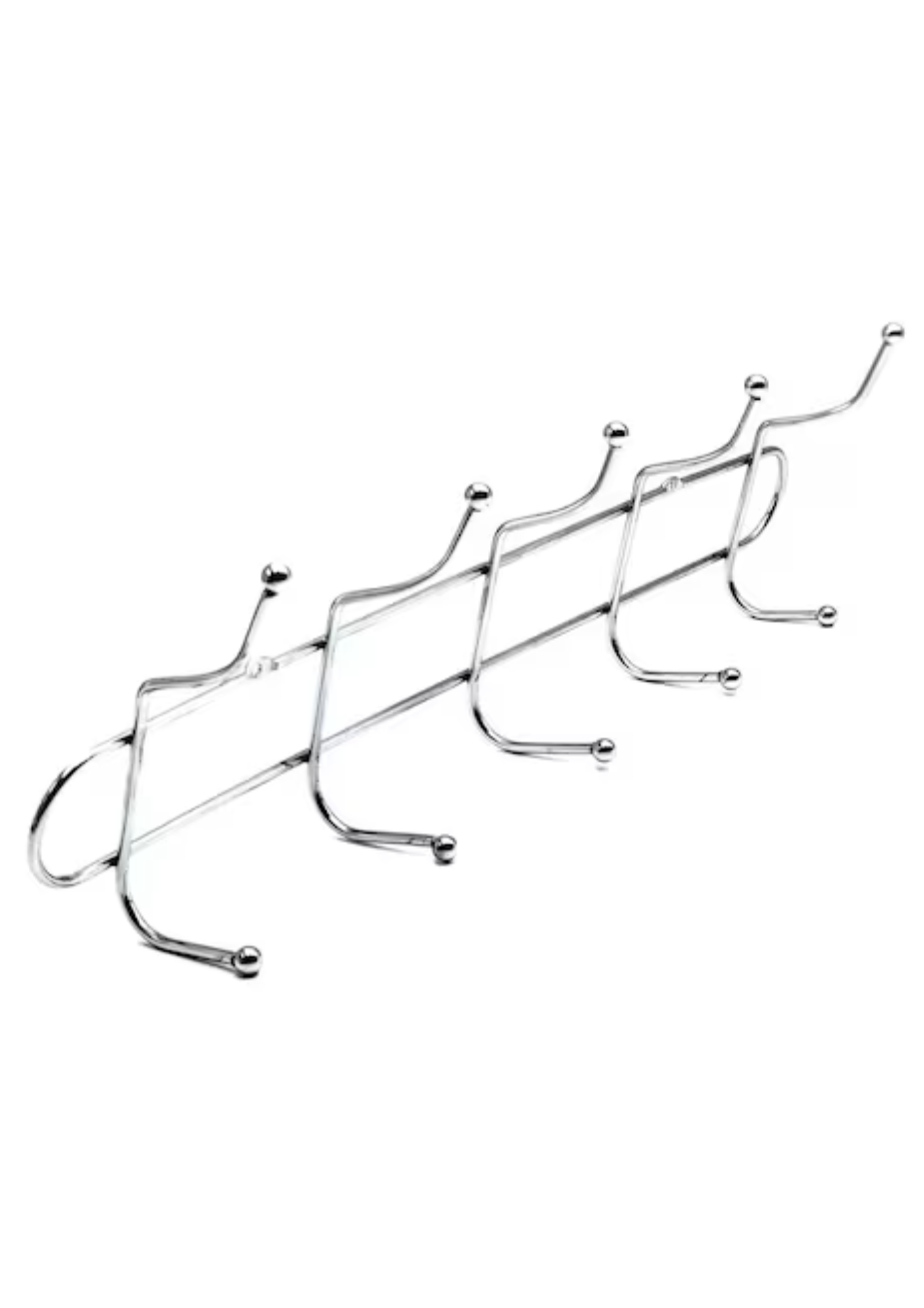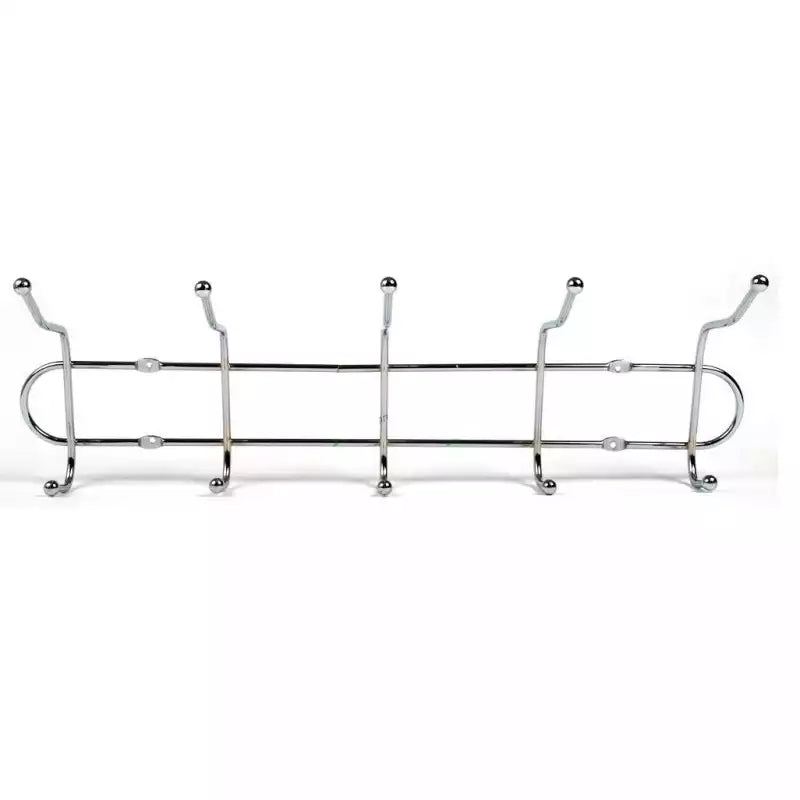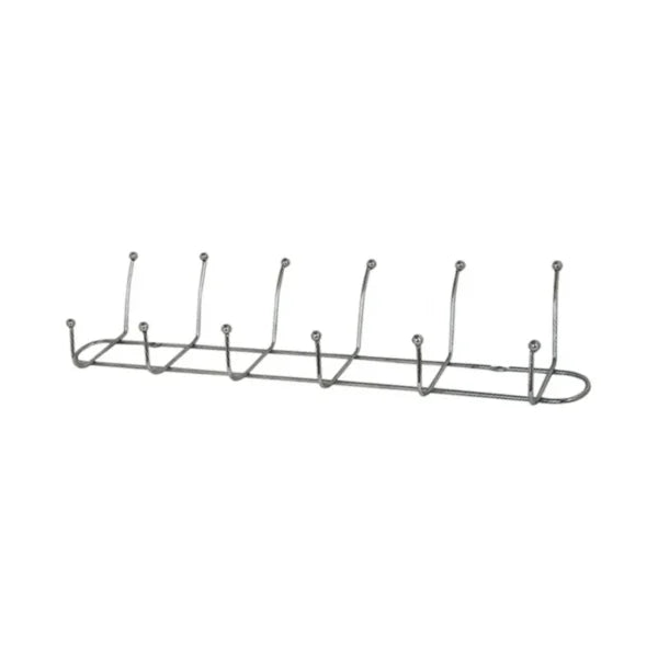 Aceasta este o bară de cârlige (cuier) destinată montării pe perete, ideală pentru hol, baie sau bucătărie. Designul său din metal cromat este funcțional și oferă multiple puncte de agățare.