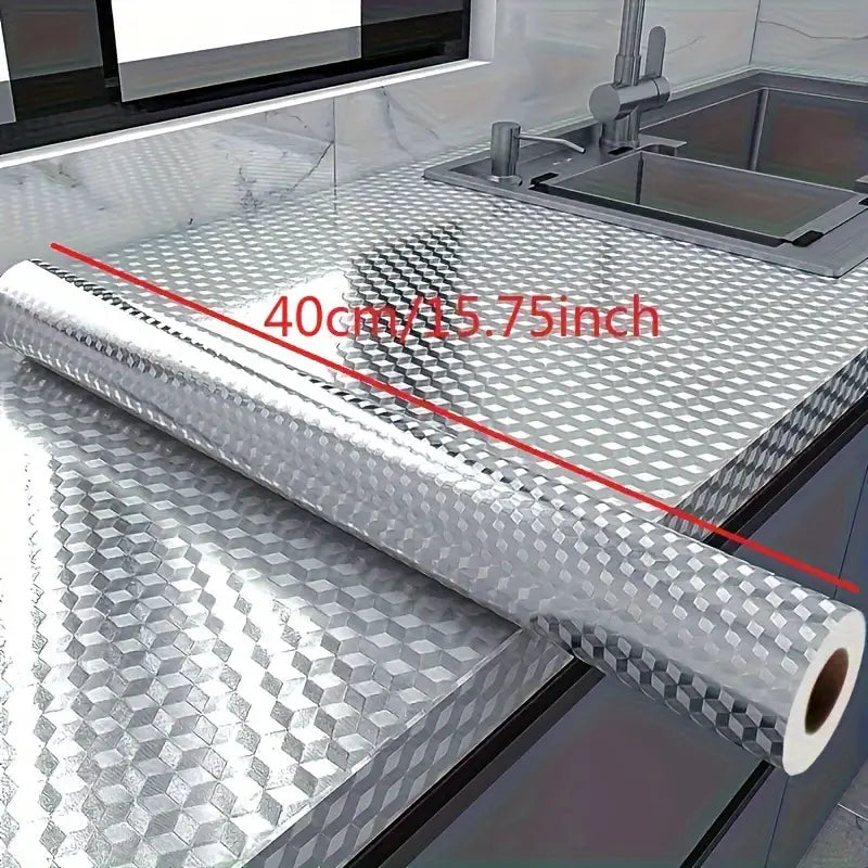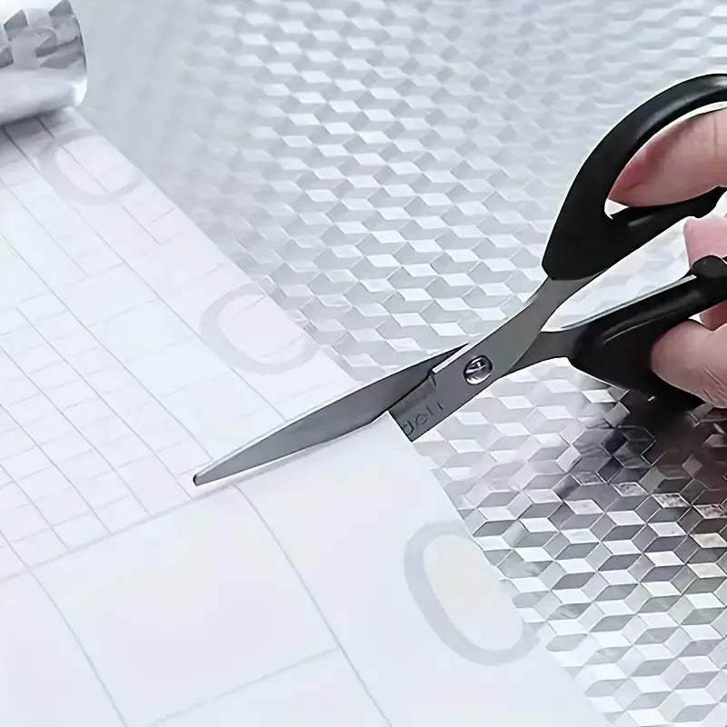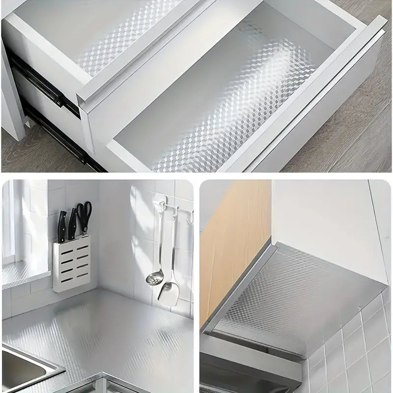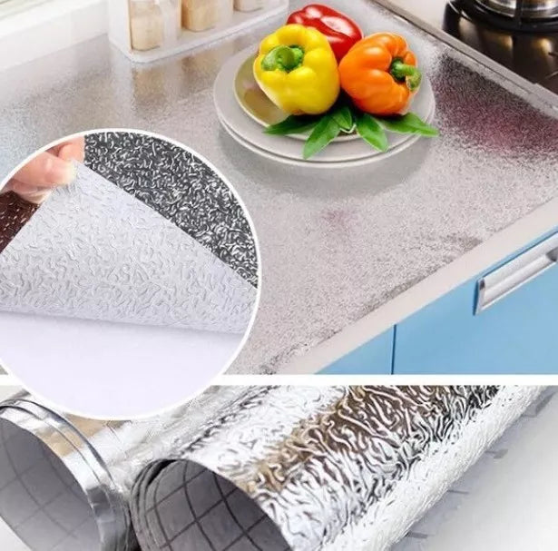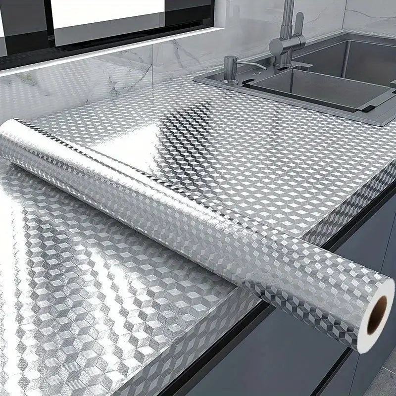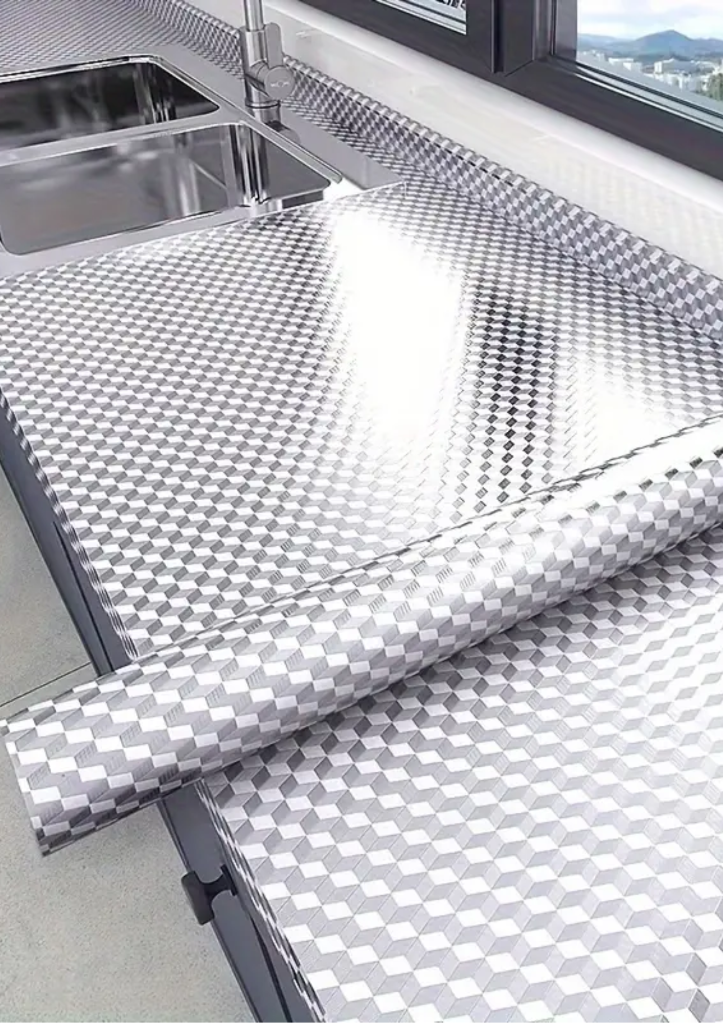 Transformă-ți rapid și eficient blatul de bucătărie, pereții sau suprafețele mobilei cu această folie adezivă din aluminiu, rezistentă la temperaturi ridicate, umezeală și pete de grăsime. Cu un design texturat tip fagure și un finisaj argintiu lucios, această folie nu doar protejează, ci și adaugă un plus de eleganță oricărui spațiu de lucru.