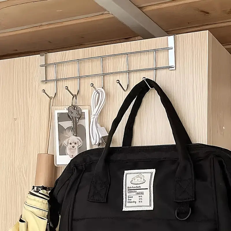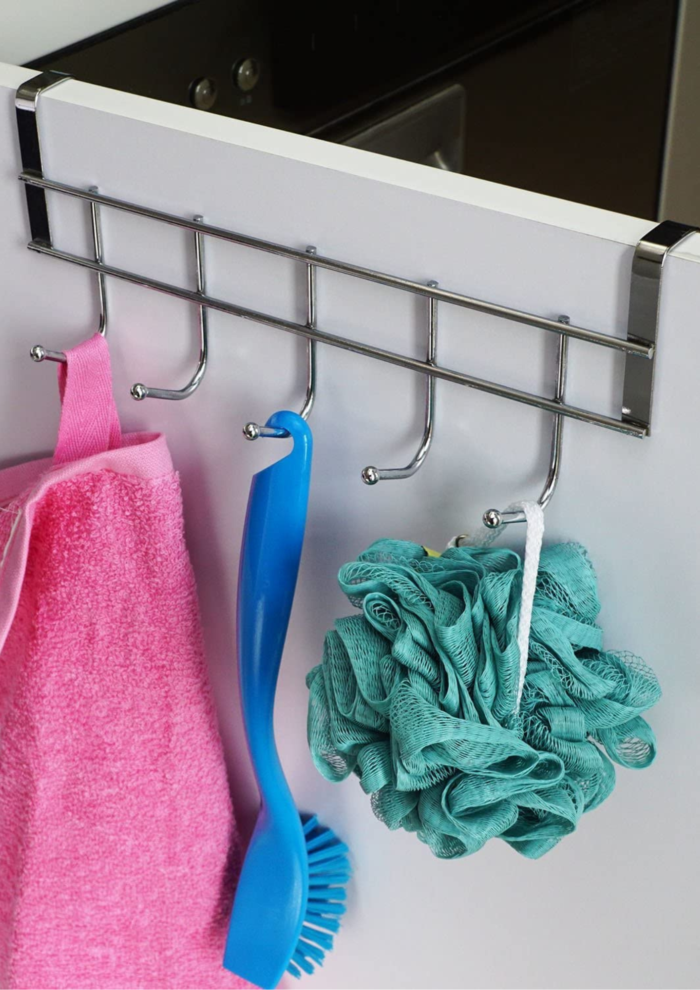 • Scăpați de dezordine și gestionați spațiul nefolosit din casa dvs., adăugând spațiu de stocare instantaneu cu acest suport organizator cu 5 cârlige peste ușă.