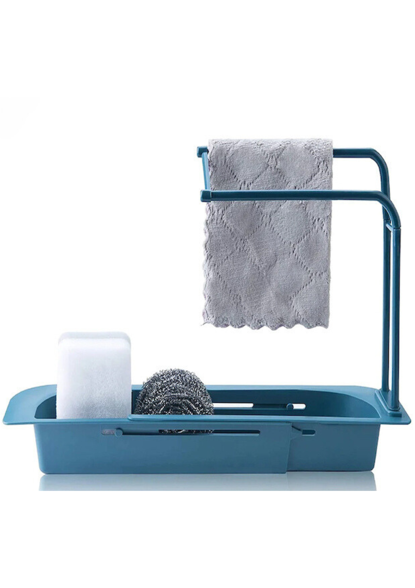 Acest produs este un organizator extensibil pentru chiuvetă, realizat din material plastic rezistent și prevăzut cu un sistem de bare suport pentru agățarea lavetelor sau bureților. Se montează direct pe marginile chiuvetei și permite scurgerea apei, păstrând zona de lucru curată și aerisită. Este ideal pentru depozitarea bureților, periilor, săpunului de vase sau lavetelor de bucătărie.