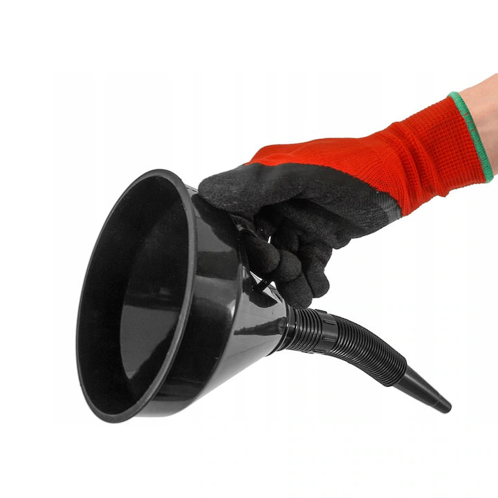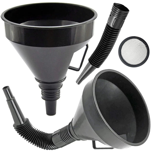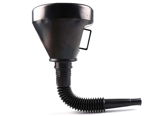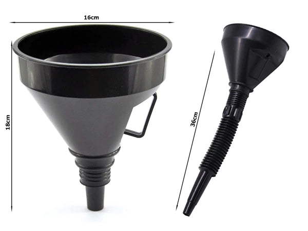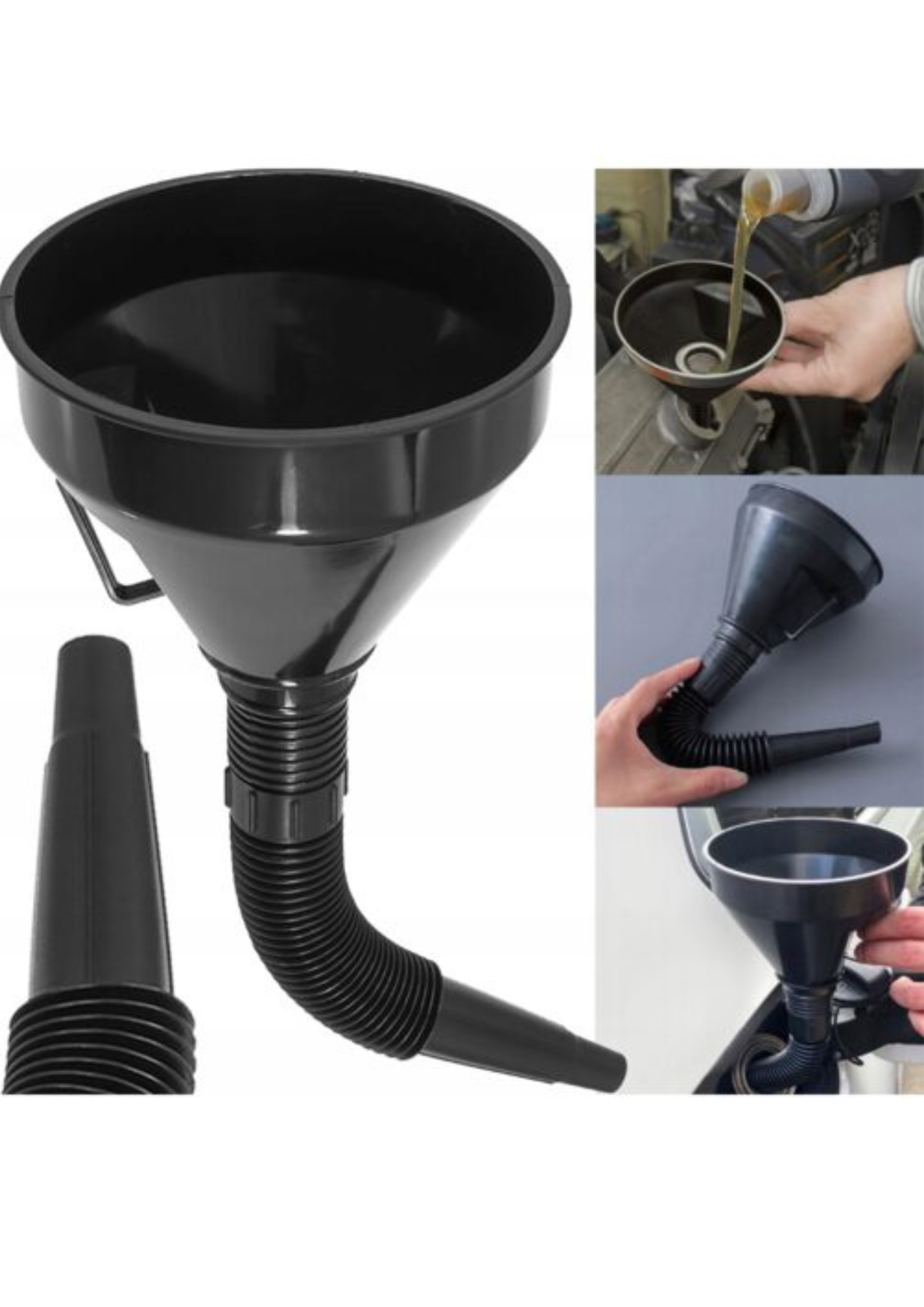 Această pâlnie este un instrument de transvazare proiectat pentru a facilita turnarea curată și precisă a lichidelor (în special fluide auto precum uleiul de motor) în rezervoare, recipiente sau guri de umplere cu acces dificil. Se distinge prin gâtul său extensibil și flexibil.