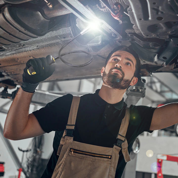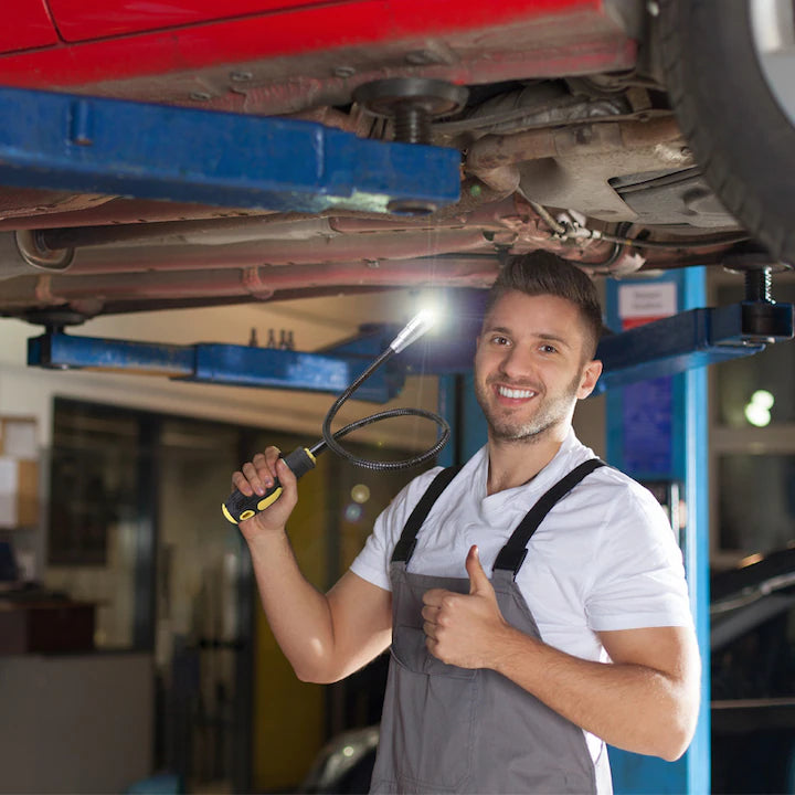 • Tijă flexibilă 360° – se modelează ușor pentru acces în zone complicate: sub mașină, în spatele mobilierului, în motor, în țevi.