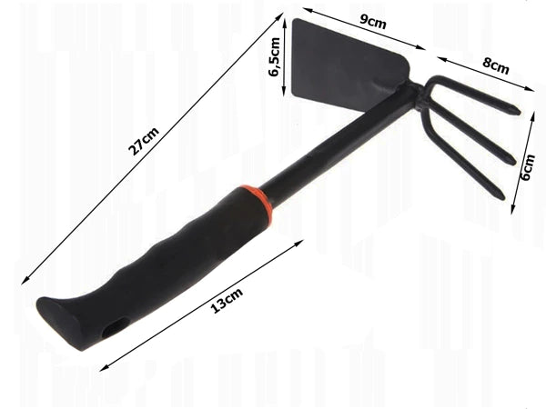 • Design Dual (2 în 1): Dispune de o lamă lată la un capăt pentru tăierea buruienilor și săpare, și de 3 dinți robuști la celălalt capăt pentru afânarea și aerarea solului.