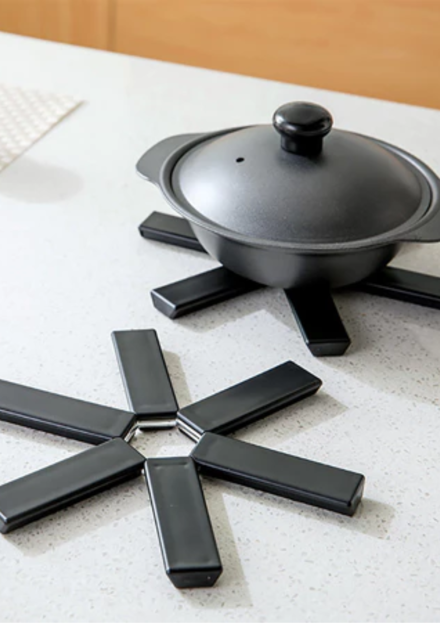 Suportul pliabil pentru oale fierbinți este soluția practică și inteligentă pentru protejarea suprafețelor de bucătărie împotriva temperaturilor ridicate. Designul extensibil se adaptează diferitelor dimensiuni de oale, tigăi sau boluri, oferind stabilitate și siguranță în utilizare.