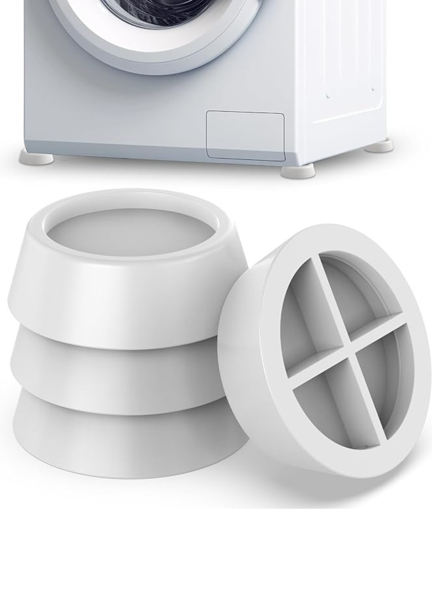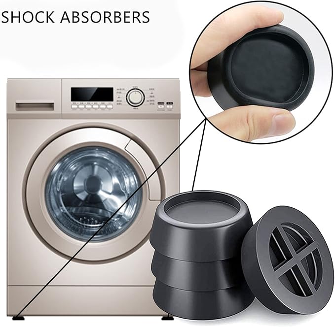 Set de tampoane anti-vibrații pentru mașina de spălat, concepute pentru a reduce zgomotul, vibrațiile și deplasarea aparatului în timpul funcționării. Fabricate din material rezistent și flexibil, aceste suporturi se montează sub picioarele aparatului pentru a oferi stabilitate și protecție podelei.