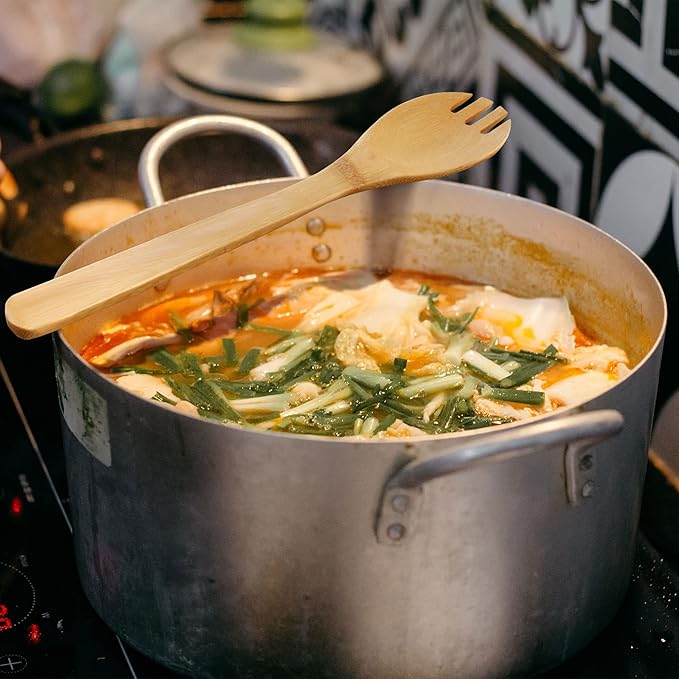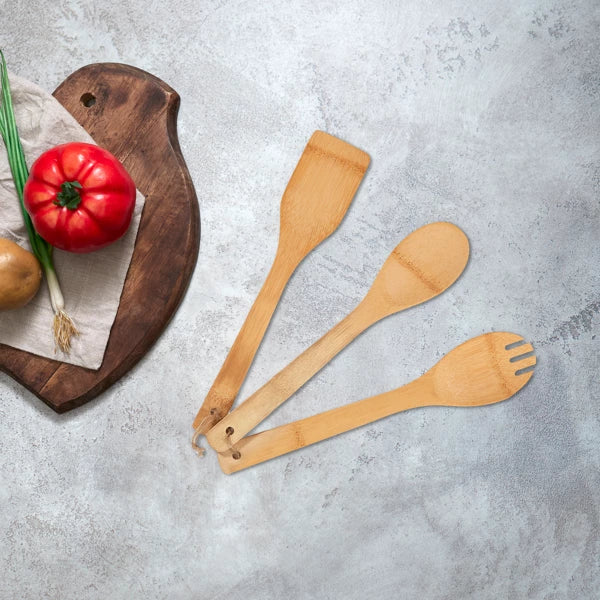 Setul de 3 linguri din bambus este un accesoriu esențial pentru orice bucătărie. Include o spatulă, o lingură clasică și o lingură cu fante, perfecte pentru amestecare, servire sau gătit fără a zgâria vasele. Materialul natural din bambus oferă durabilitate, rezistență și un aspect elegant, potrivit oricărui decor de bucătărie.