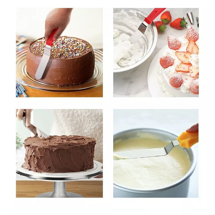 Set practic format din 3 spatule pentru prăjituri, ideale pentru decorarea, întinderea și nivelarea cremei, glazurii sau frișcăi. Fabricate din lamă metalică rezistentă și mâner ergonomic din plastic, aceste spatule sunt potrivite atât pentru uz casnic, cât și pentru cofetari amatori sau profesioniști.