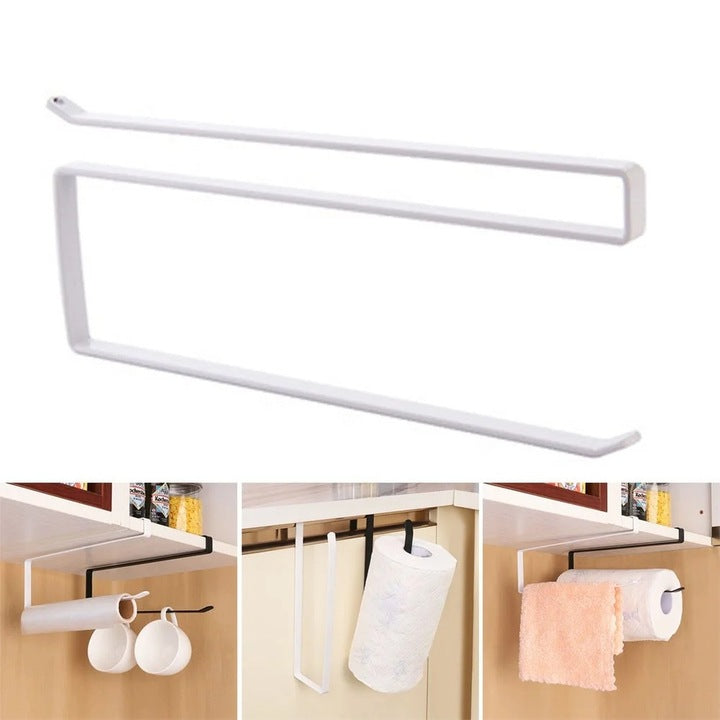 Suportul pentru prosoape este conceput din metal rezistent, cu un design minimalist și modern. Permite montarea rolelor de prosop de hârtie, a lavetei, a foliilor alimentare sau chiar a ustensilelor ușoare. Se fixează simplu prin agățare pe marginea unui raft sau dulap, economisind spațiu și făcând accesul la prosop rapid și comod.