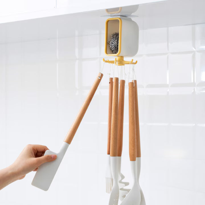 • Cârlige multiple: ideale pentru agățarea lingurilor mici, spatulelor, curățătoarelor de legume etc.