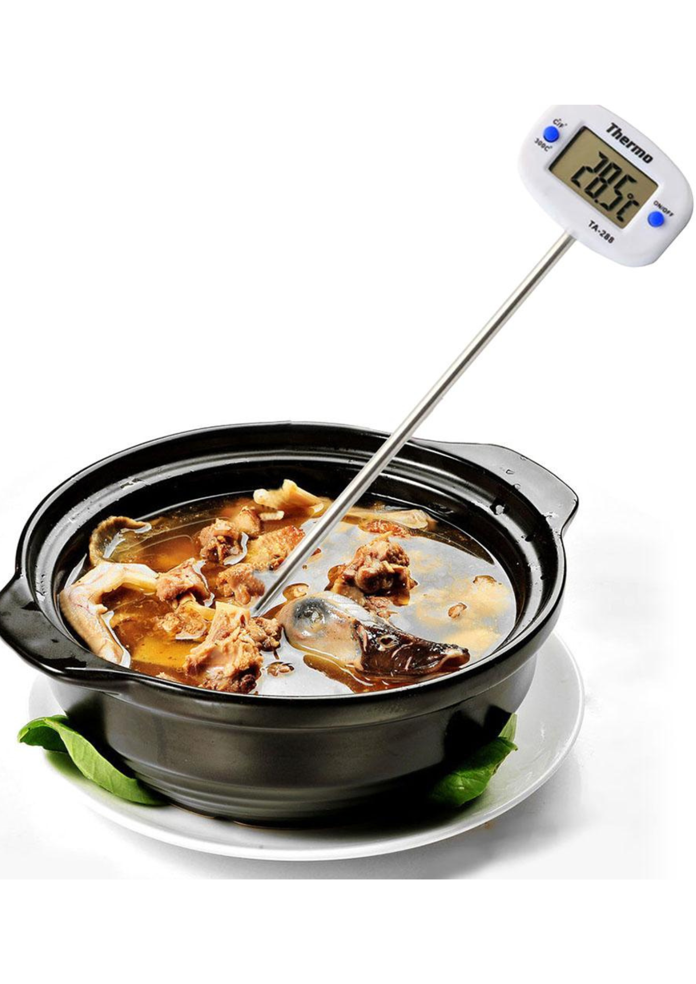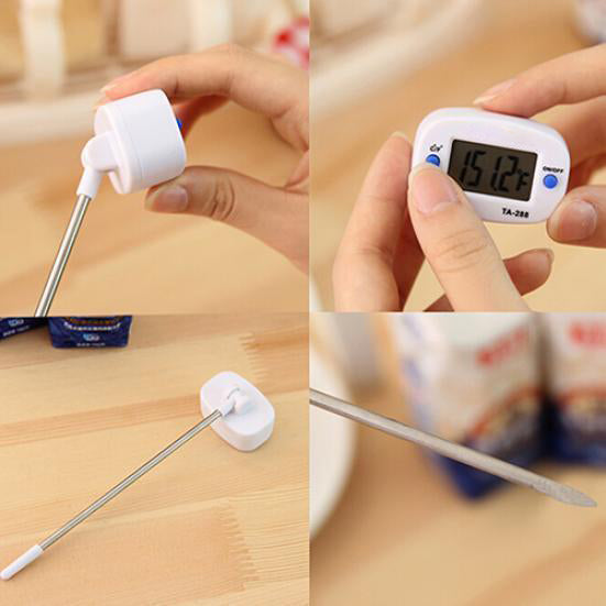 Termometrul digital pentru gătit TA-288 este un instrument esențial pentru bucătarii profesioniști și pasionații de gastronomie, oferind măsurători precise ale temperaturii alimentelor în doar câteva secunde. Cu un senzor metalic lung, poate fi introdus direct în carne, preparate la cuptor, lichide, ciocolată topită, siropuri, fripturi, grătar sau chiar pentru verificarea temperaturii uleiului și a apei.