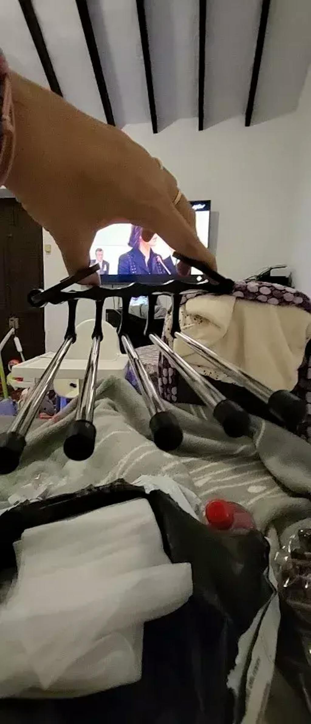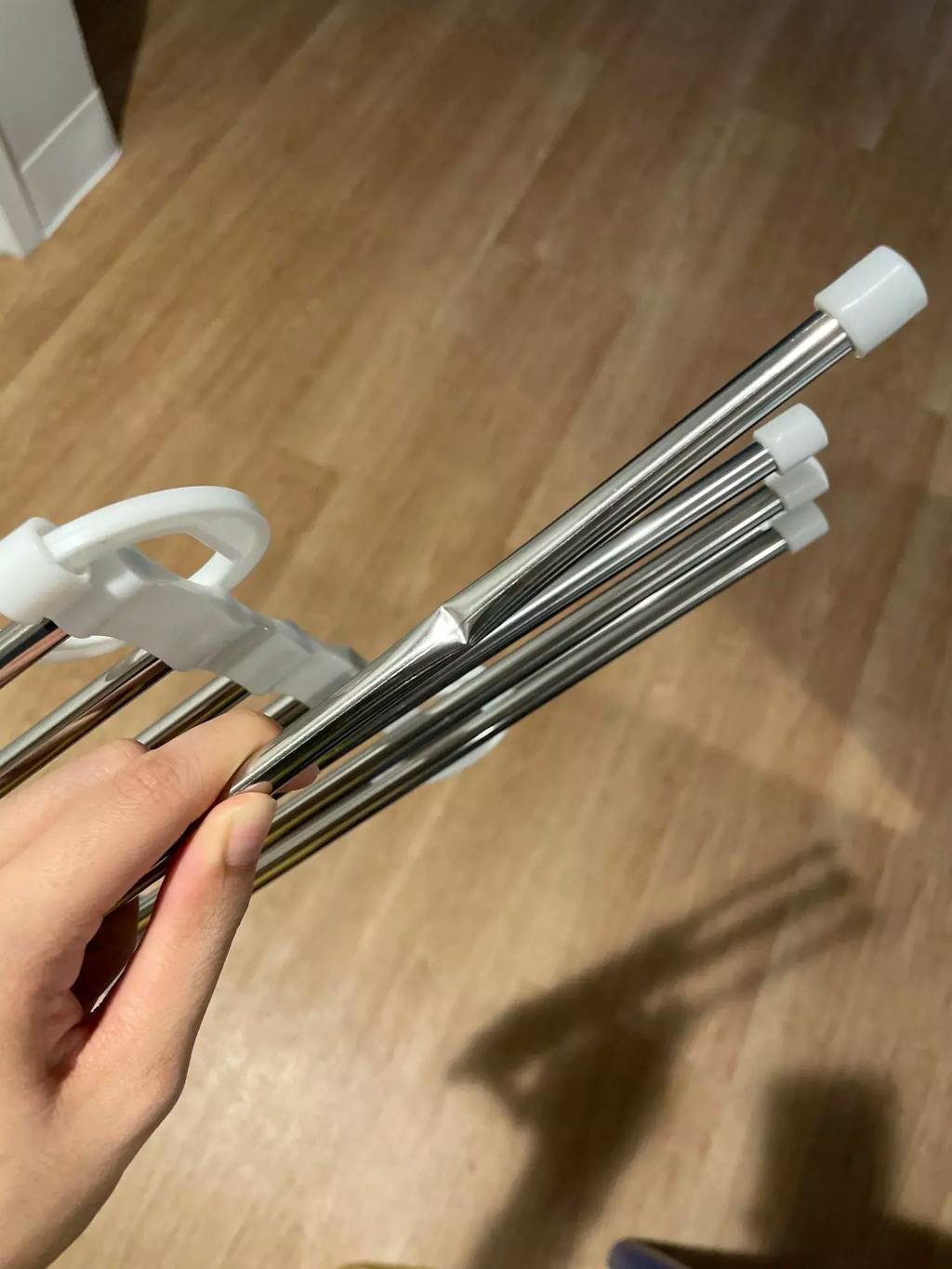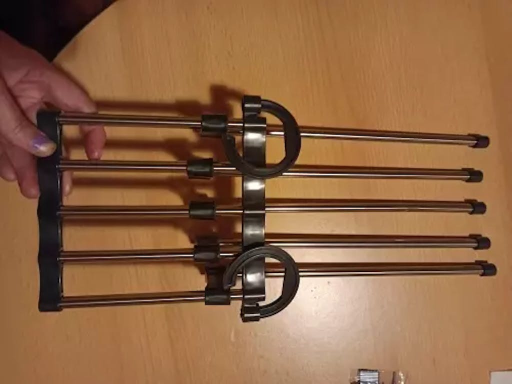 • 5 brațe metalice pentru agățarea pantalonilor, eșarfelor, cravatelor sau prosoapelor